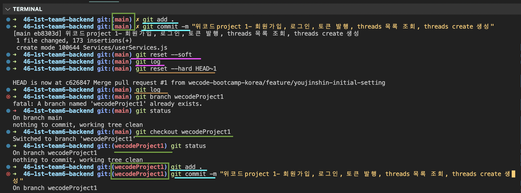 | Project 1: 5일 차 오후: 깃허브 branch 문제 해결 [2차 시도] (체리픽까지 나옴) (0) | 2023.09.15 |