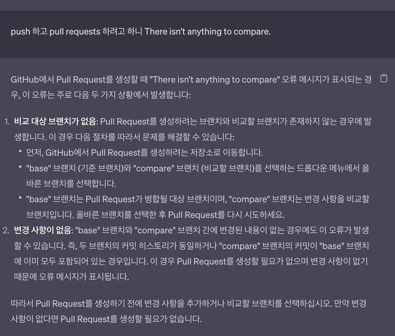이미 main에 merge하기 위해, pull request를 하는 것으로 알고 있어서,