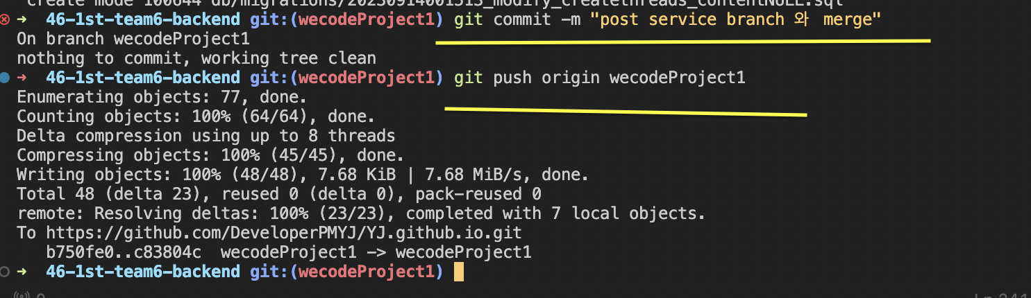 이후 project1을 git add. / commit 을 하는데,