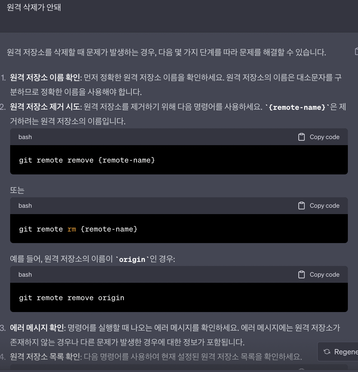git remote -v 로 확인했는데 계속 목록에 떴다.