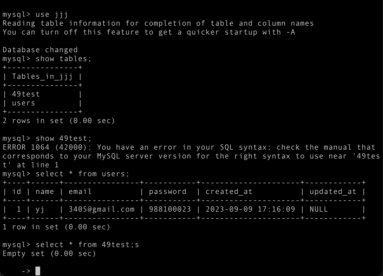 3. 회원가입 mysql 데이터베이스에 잘 들어갔는지