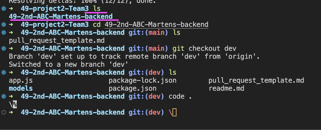 dev, main에서 절대 push, pull 를 절대 하면 안됨