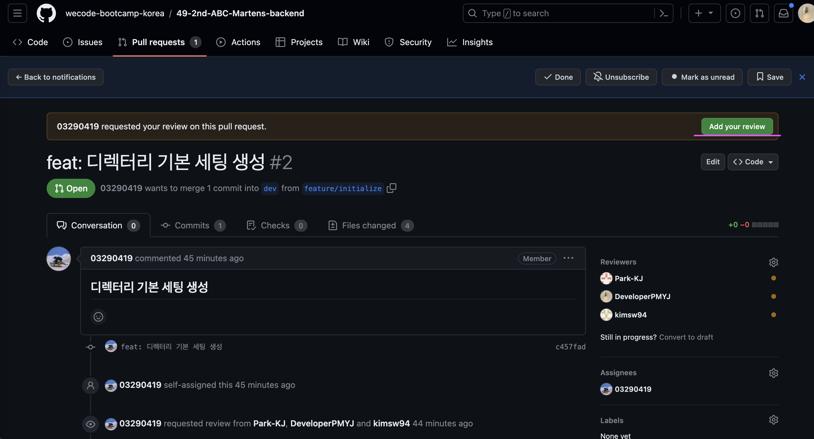유일하게, pull request (pr)을 해본 사람이였기에,