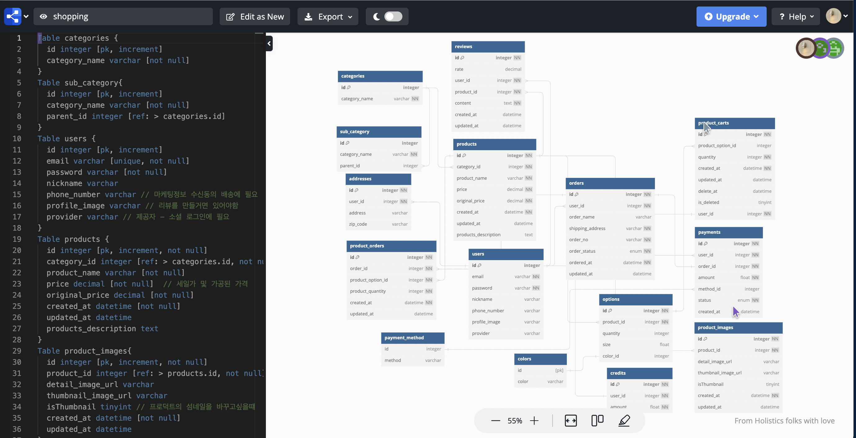 하면서 데이터베이스에 수정 되면,erd도 같이 수정.