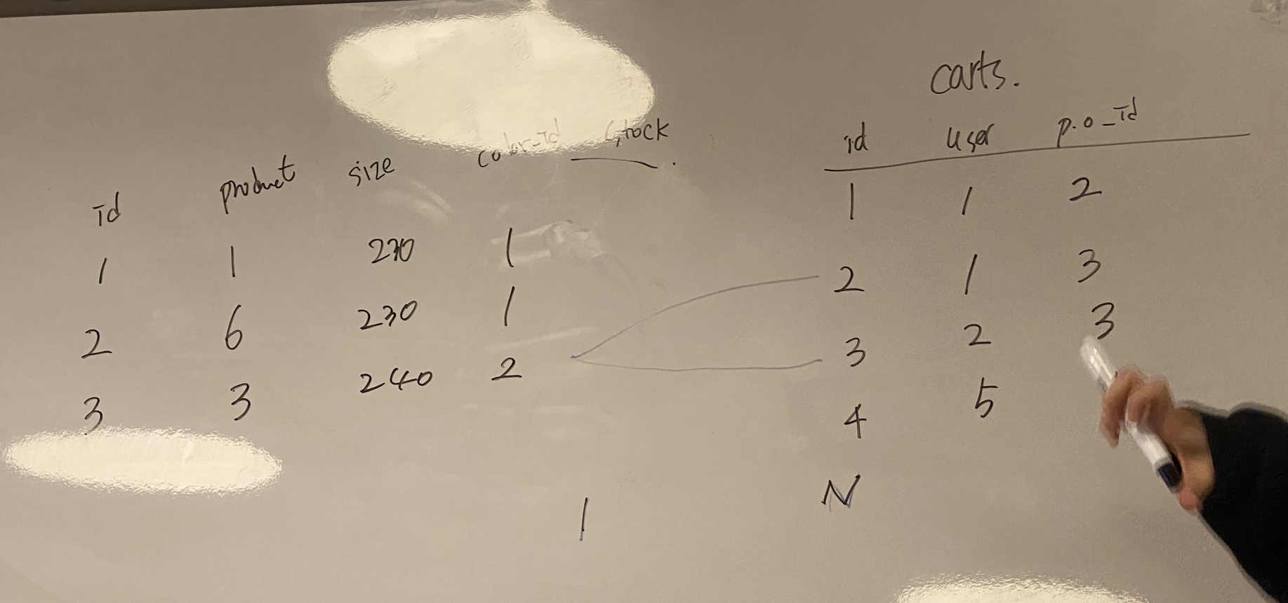 product-option 1개가 product-cart 여러개 담길 수 있음. ( 같은 색, 같은 사이즈여도, product id가 다름