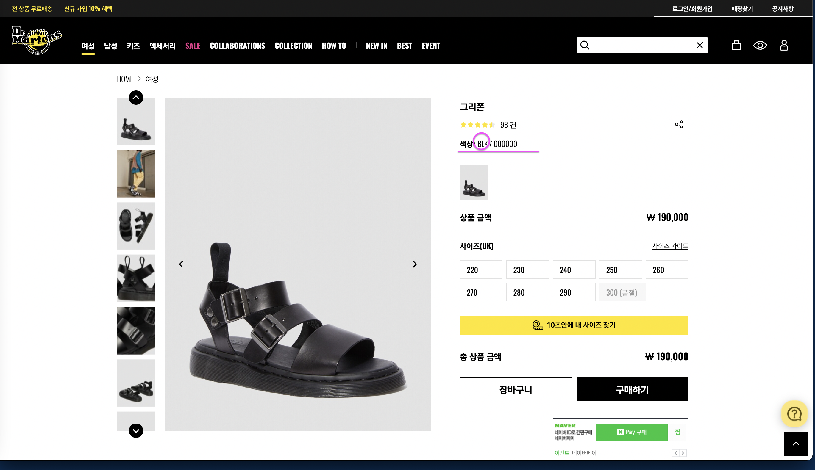 장바구니에 줄이 하나씩 들어가니까, (검정- 220 담기, 검정 250이렇게 한번씩 한번 가져가야 함)