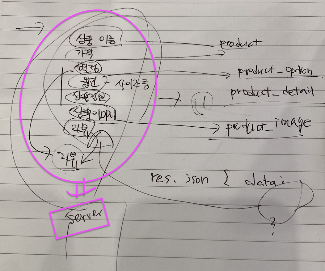 상세페이지의 정보가 다 product table에서 오는게 아니라 다 다르게 오는 거라