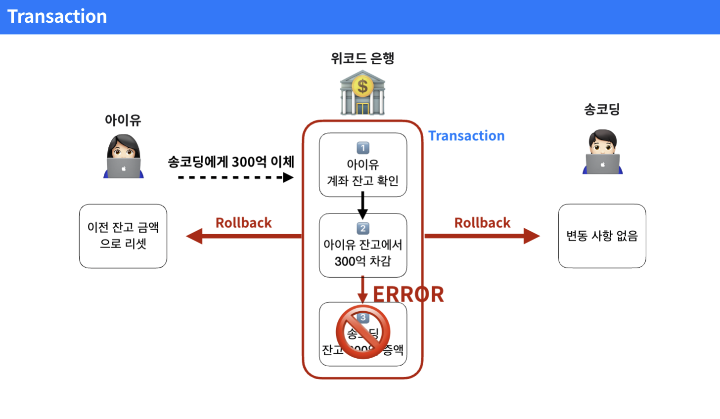 하나의 transcation으로 묶여있기에 하나의 쿼리라도 실패하니 롤백해야