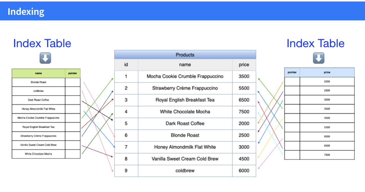 -> Index Table 을 사용해서 검색을 빠르게 하는 것