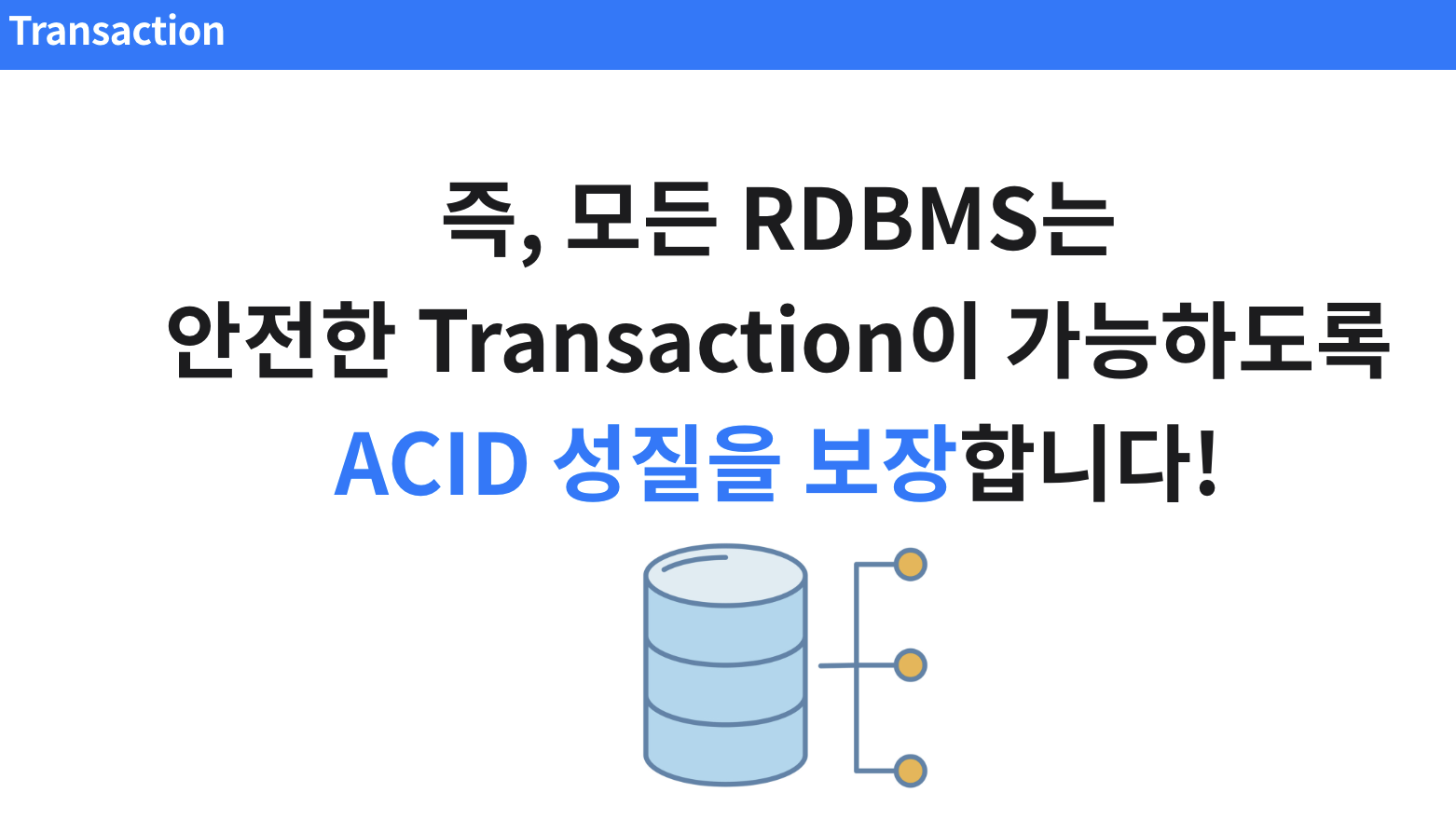 4. 지속성 - transaction 성공하면, commit내용은 저장된다. / 전원손실 돼도 변경 상태 유지