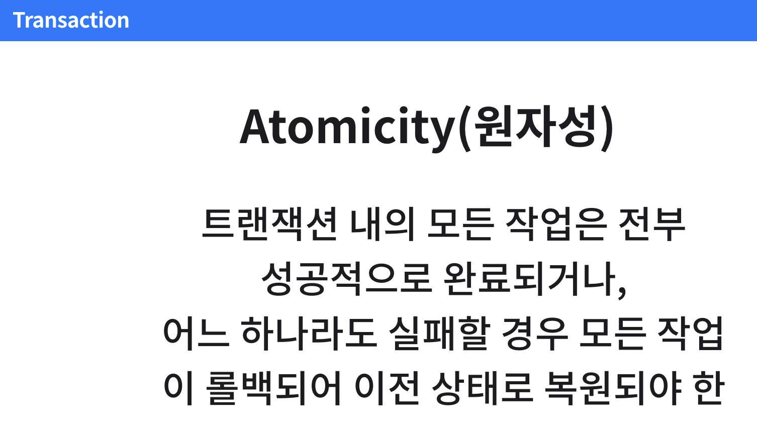 롤백이 아니면 commit/ commit하다가 실패하면 롤백 (흑과백) – >ACID의 원자성 성질로 인해