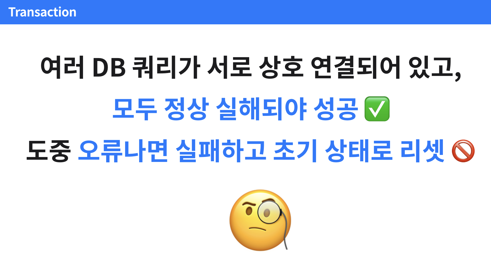 하나의 transcation으로 묶여있기에 하나의 쿼리라도 실패하니 롤백해야