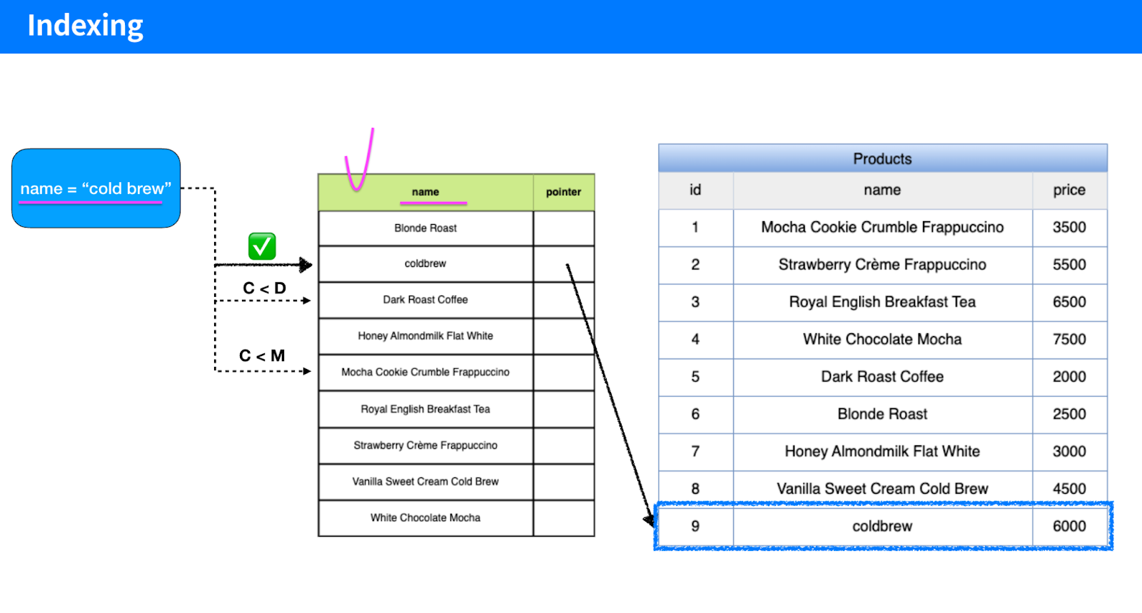 (name = coldbrew 이면서 price = 7500 는 아님. 그런 거 없음;