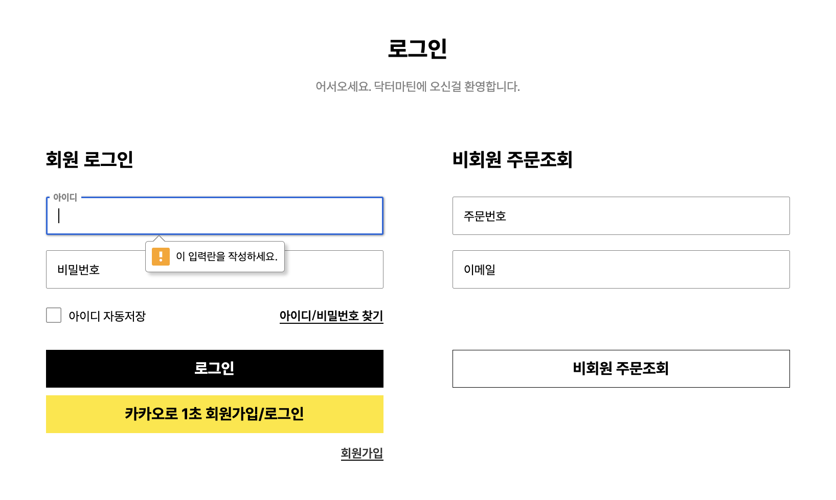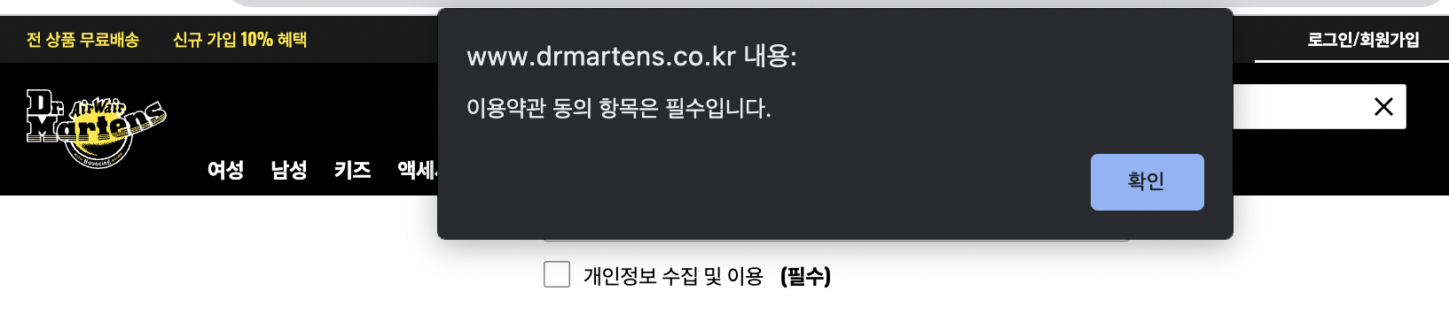 이용약관 체크는 필수입니다. 나오는데, 그건 프론트에서.