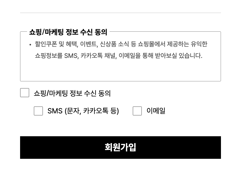 우리는 굳이 이용약관 체크한 고객에 대한 정보 받을 필요 없음. --> 이용약관 체크한 사람만 회원가입 되니까 어짜피.