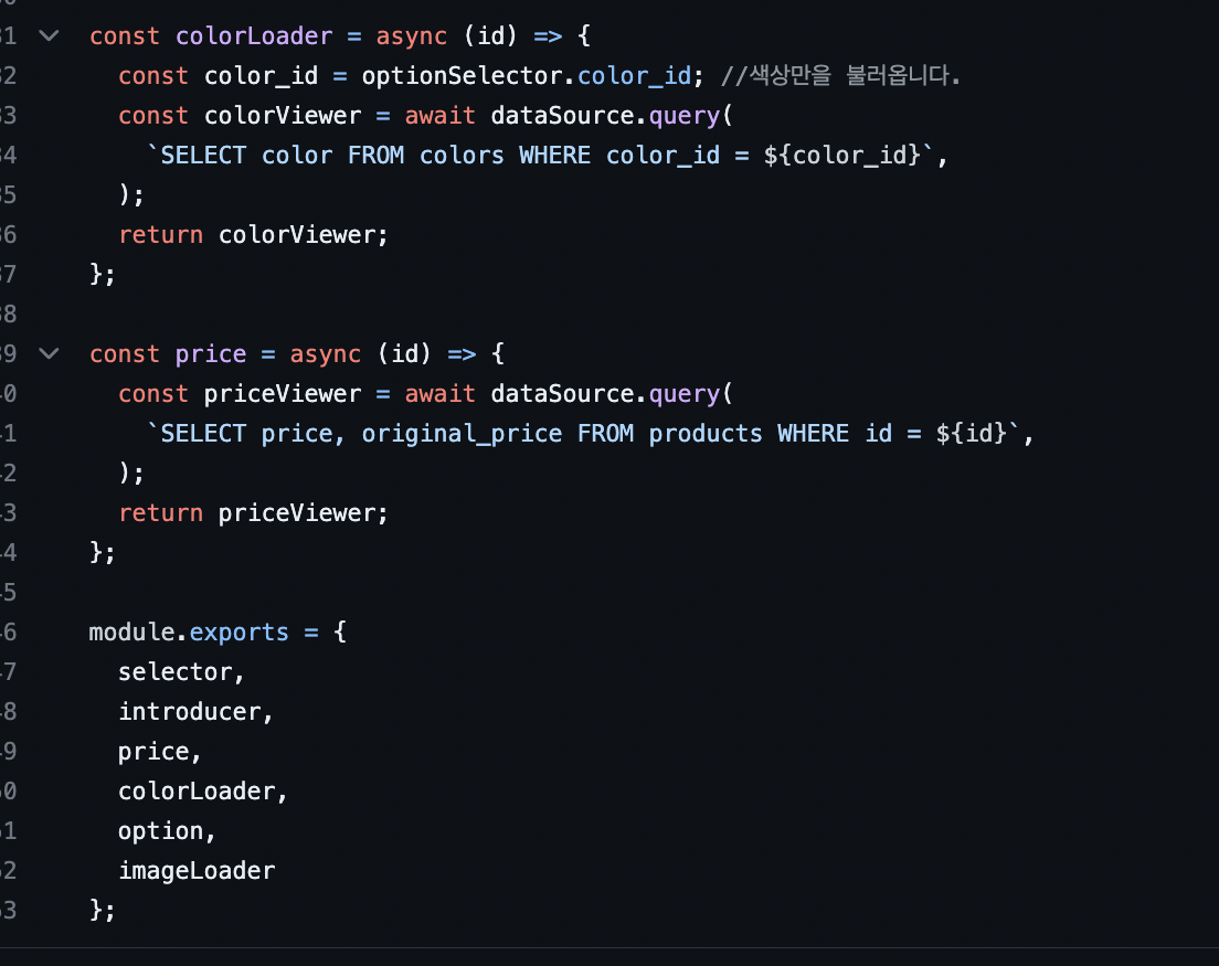 const productReader : 라고 상세페이지 목록 가져오는 걸 reader 함수로 선언 (데이터베이스에서 긁어오겠다)