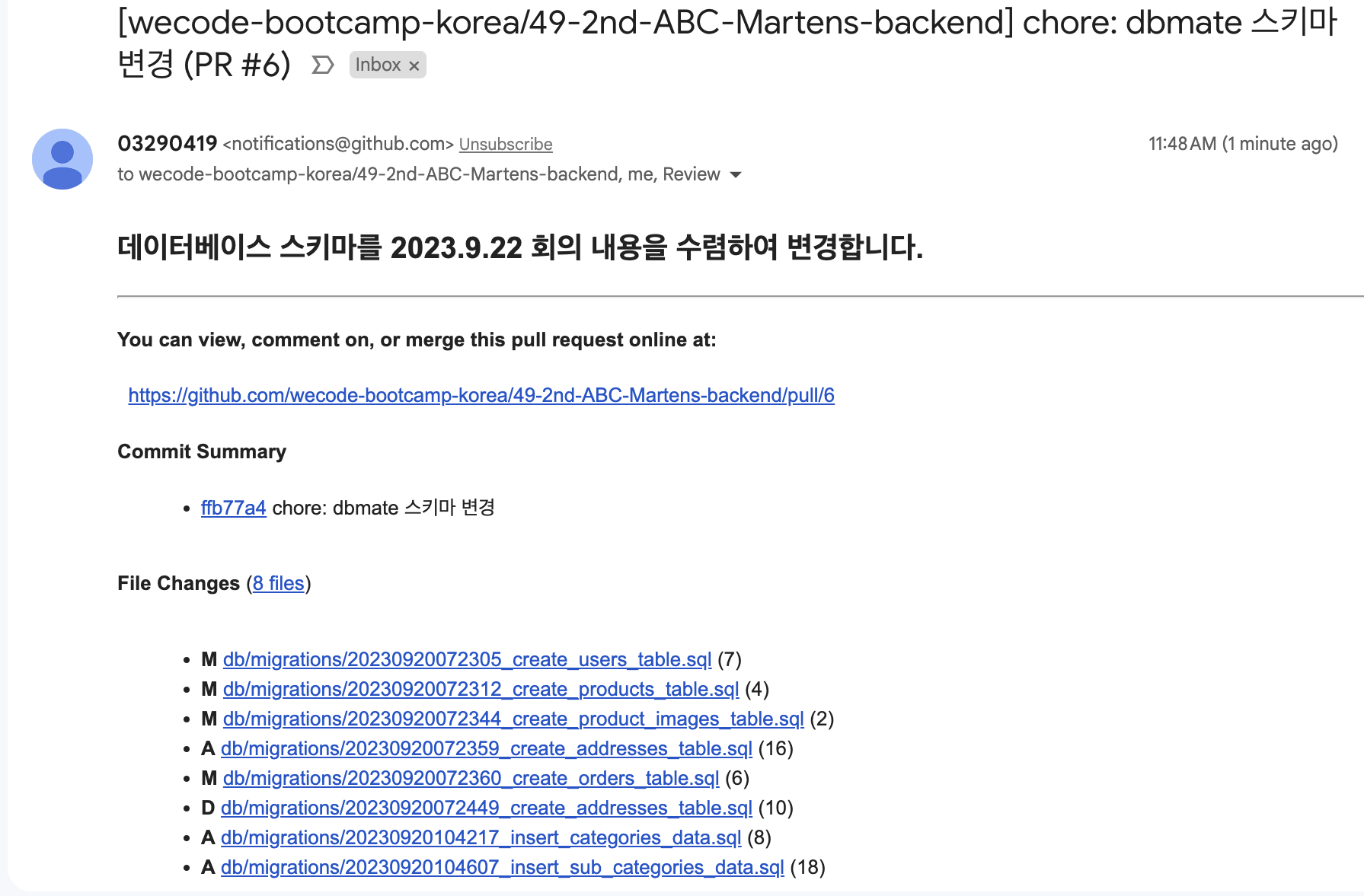 migration file (데이터베이스, 스키마) 수정