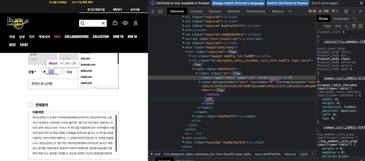 프론트: 아이디 없으니, 최상단에 이메일 오게/ 이메일 full 로 오는 한 칸으로 .