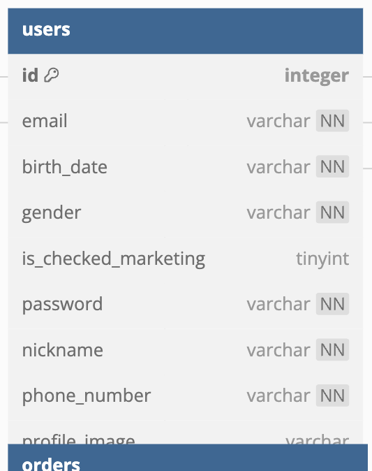 2) isCheckingMarketing :마케팅 수신 정보 (선택사항) --> tinyint 0,1 (yes/ no)