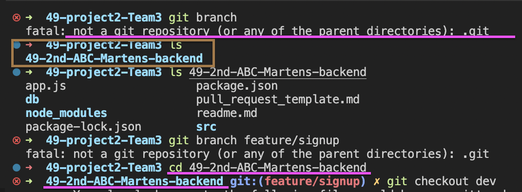 1-2. git checkout feature/signup, git pull origin dev