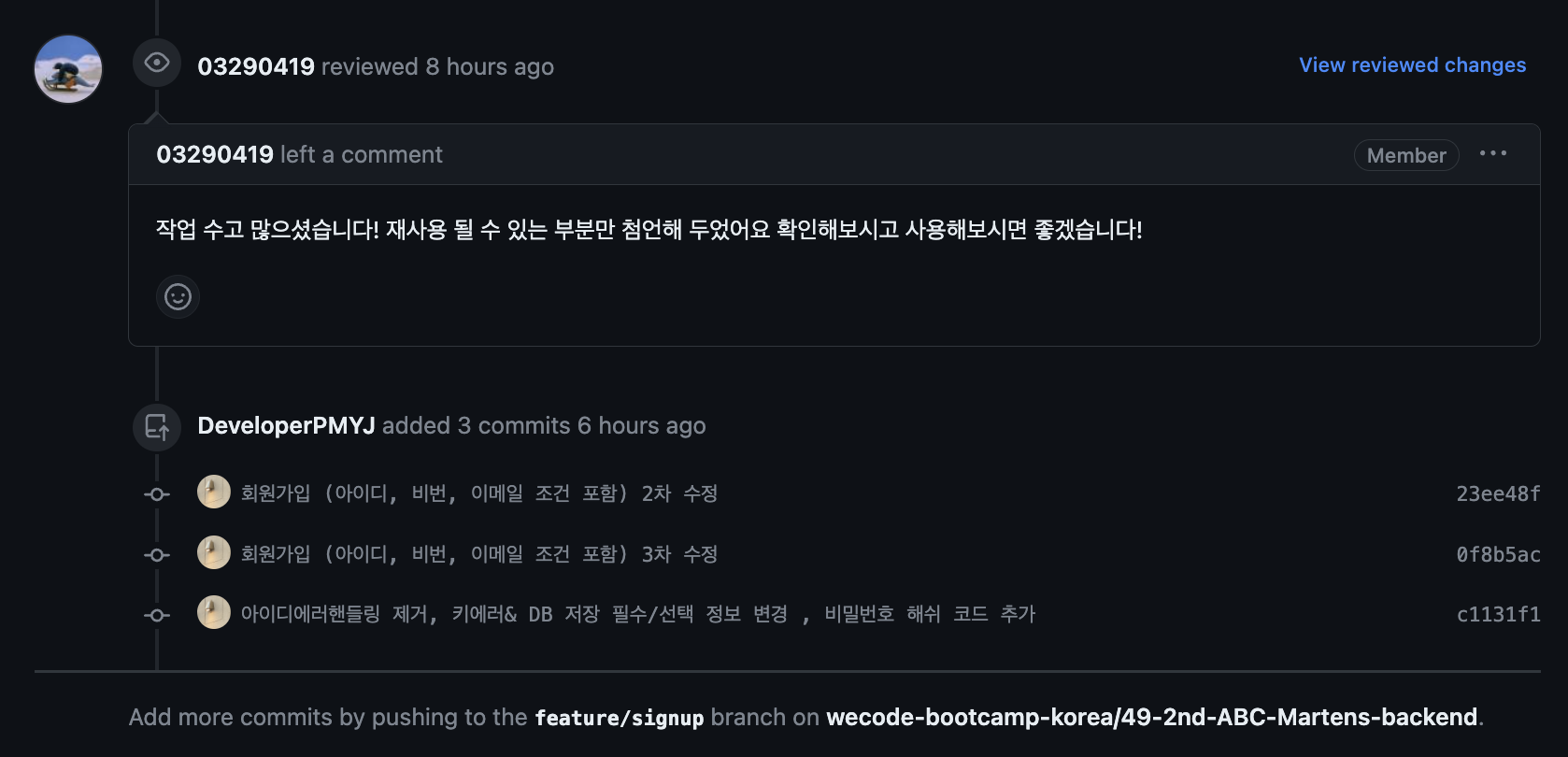 | Project 2 - 5일 차 (5): 내가 push 한 회원가입 함수 : standing meeting에서 수정할 부분 (0) | 2023.09.22 |