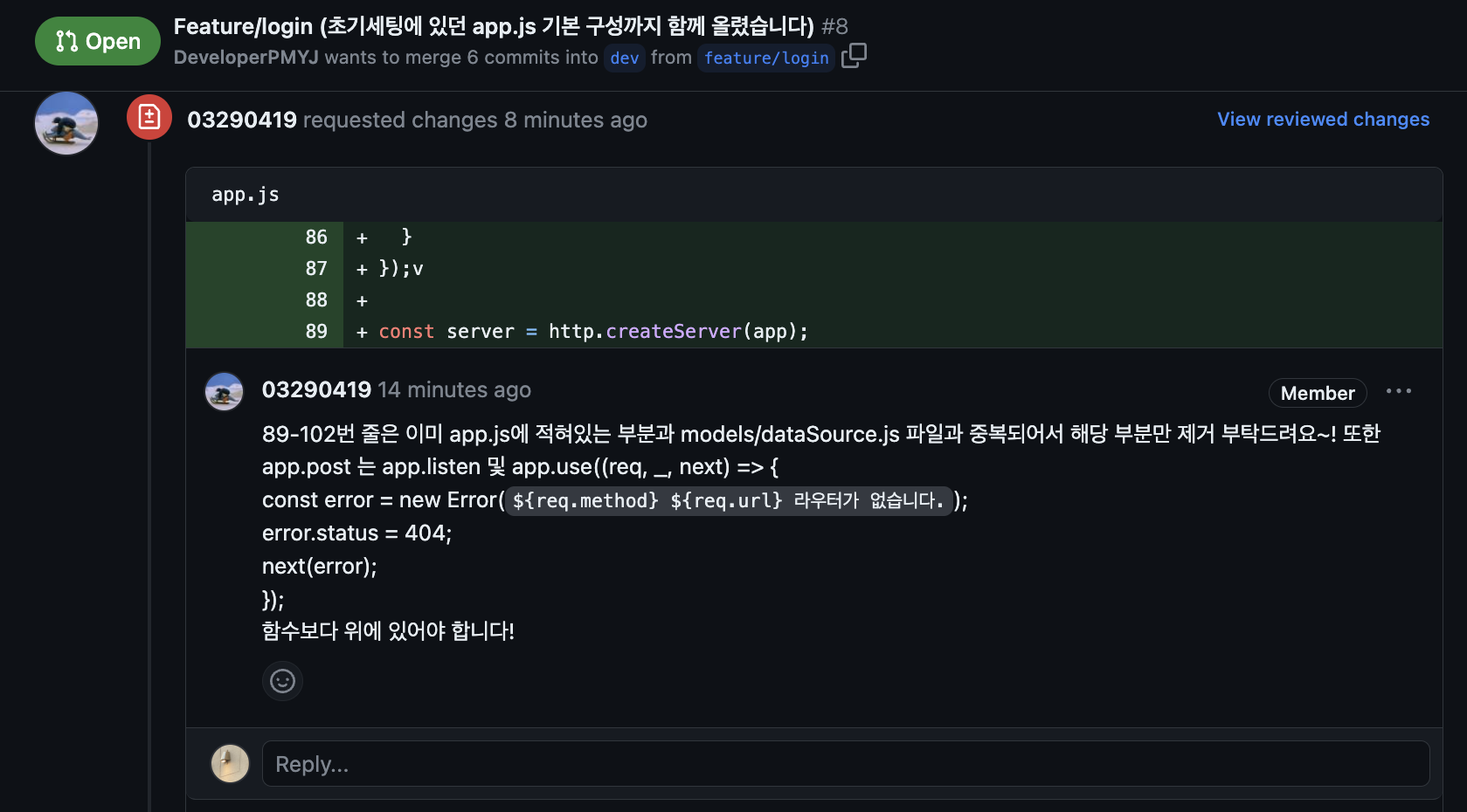 | Project 2 - 5일 차 (6) : 내가 push 한 회원가입 함수 : pull request 팀원 리뷰 + 수정본 ** 해야 함 (0) | 2023.09.22 |