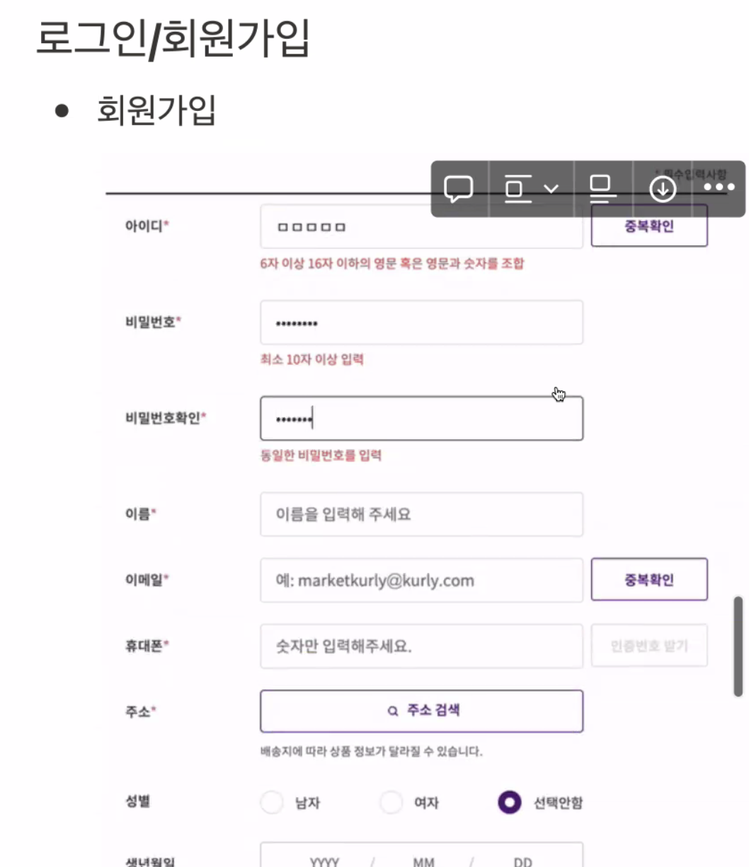 아이디 치는데, 경고 메세지가 실시간으로 나옴. (예전만해도 모든 내용 다 기입 후, enter 쳐야만 확인 가능했는데, 쳤단 거 싹 사라져서 다시 기입해서 고객 이탈)