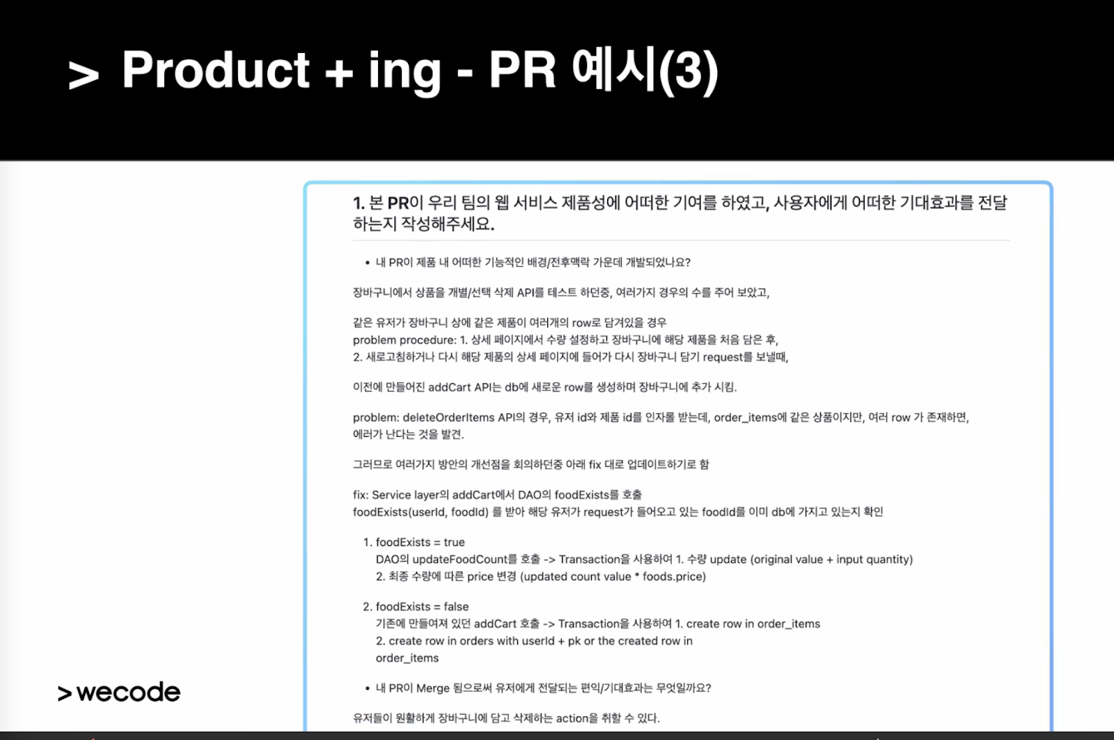 PR template / PRD를 쓸때” 이런 고민을 했다. “아직 시기 어린 사람이지만, 누가봐도 이 사람은 고민하면서 코드를 짰구나 알 수 있음,
