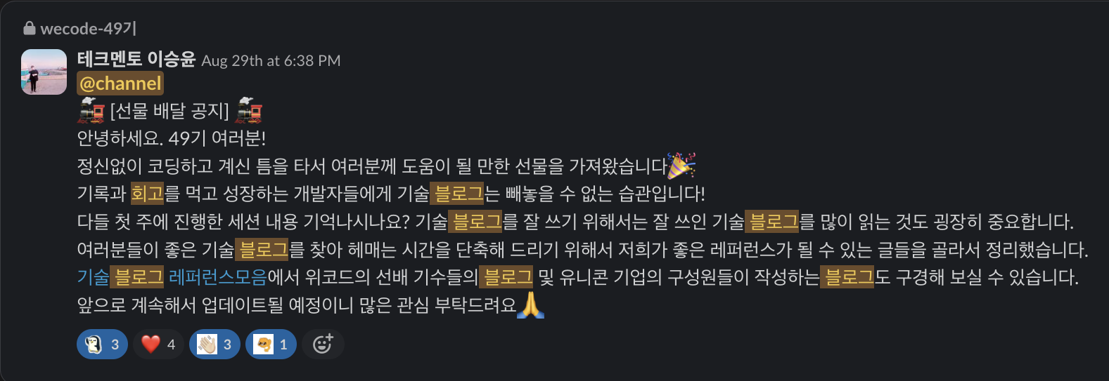 이승윤 멘토님: 선배 기수 좋은 사례, 실제 IT 대기업 기술 블로그 사례 전달