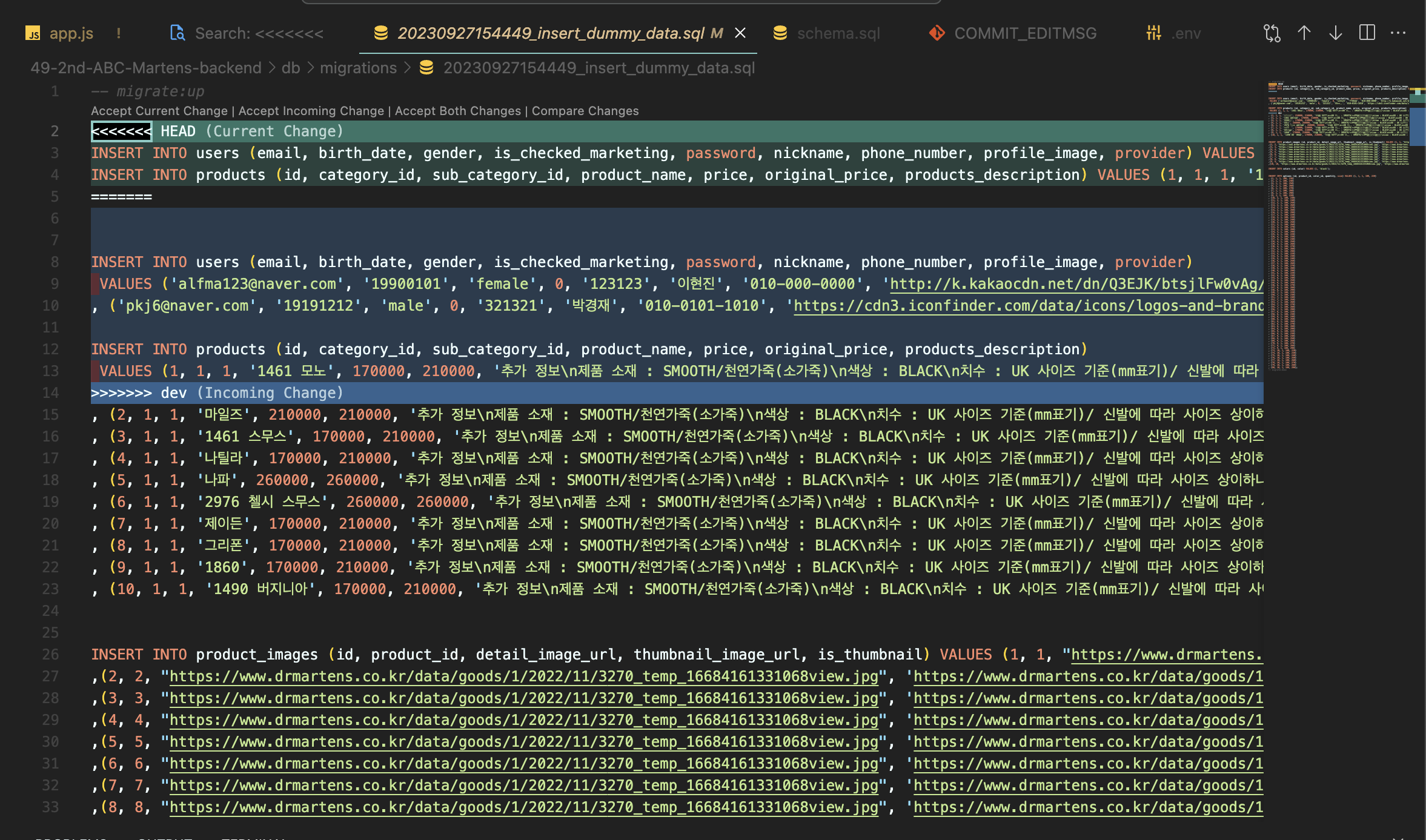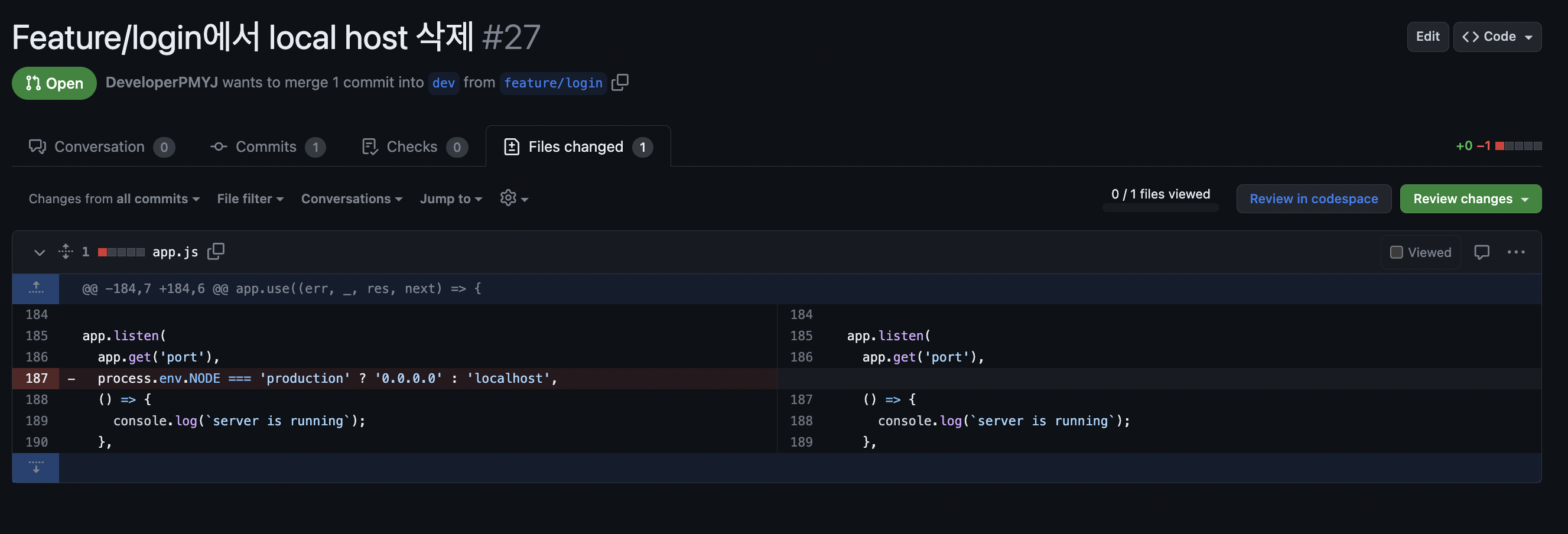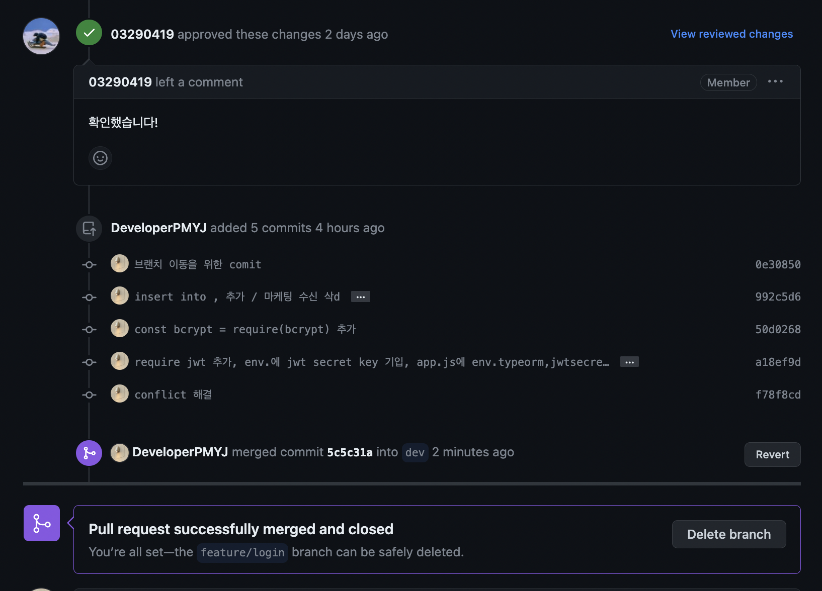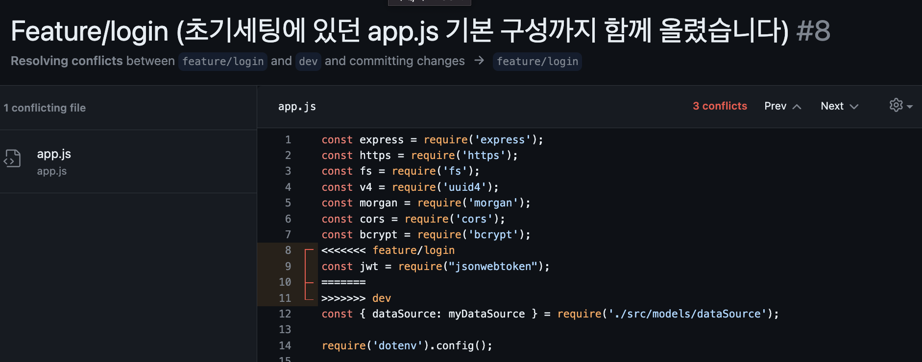 이미 dev에 merge 됐기에,내가 pr로 새로 올린 branch의 수정 사항이