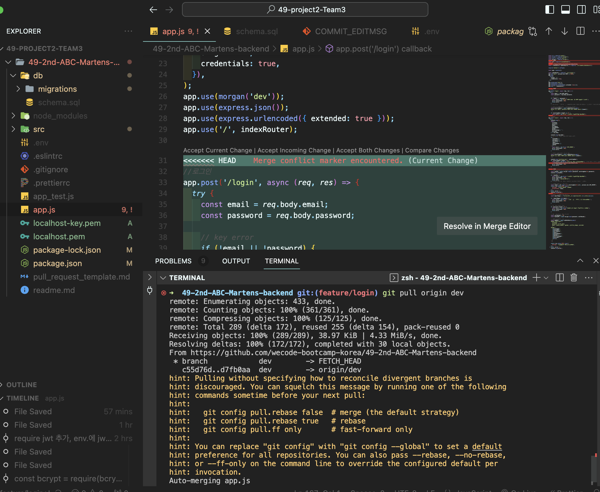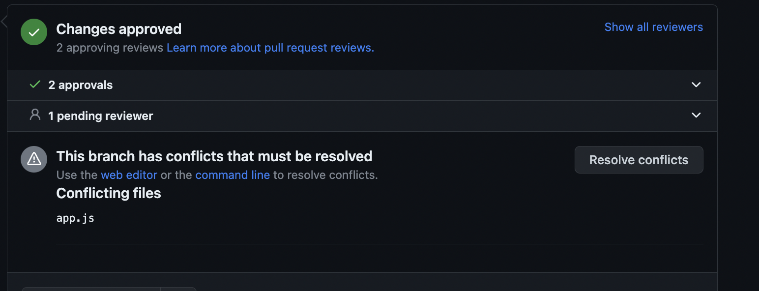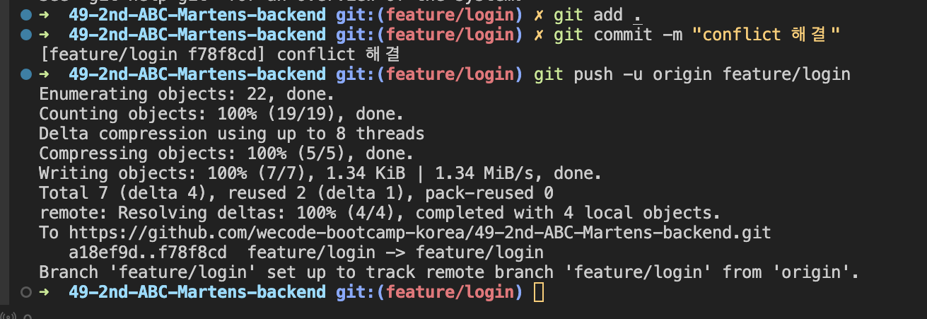 1. pr 한 뒤에 github에서 conflict 나면, 그 conflict 난 것을 다시 로컬에 pull 받아야 함