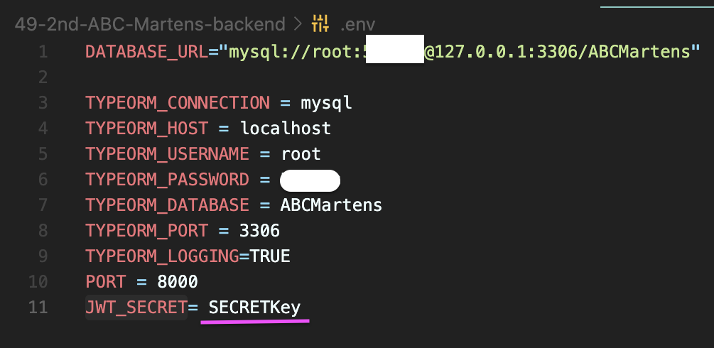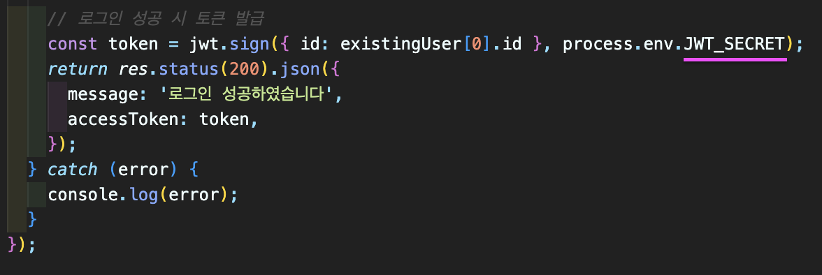 3. jwt token value 값을 .env 파일에 기입하지 않음