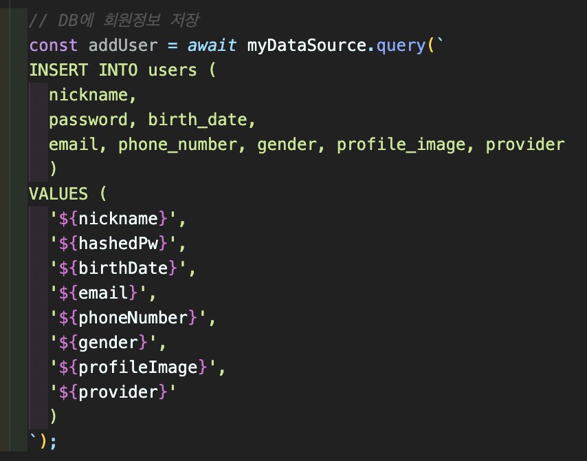 -Westagram Backend Project - TypeORM 설치 및 적용 dbConnection 정상 작동 확인 아래 링크에서 진행했던 TypeORM 설치에서 이어져서, [Express 초기 환경세팅/ TypeORM 설치] **(주황색) -Westagram Backend Project - 1. Express