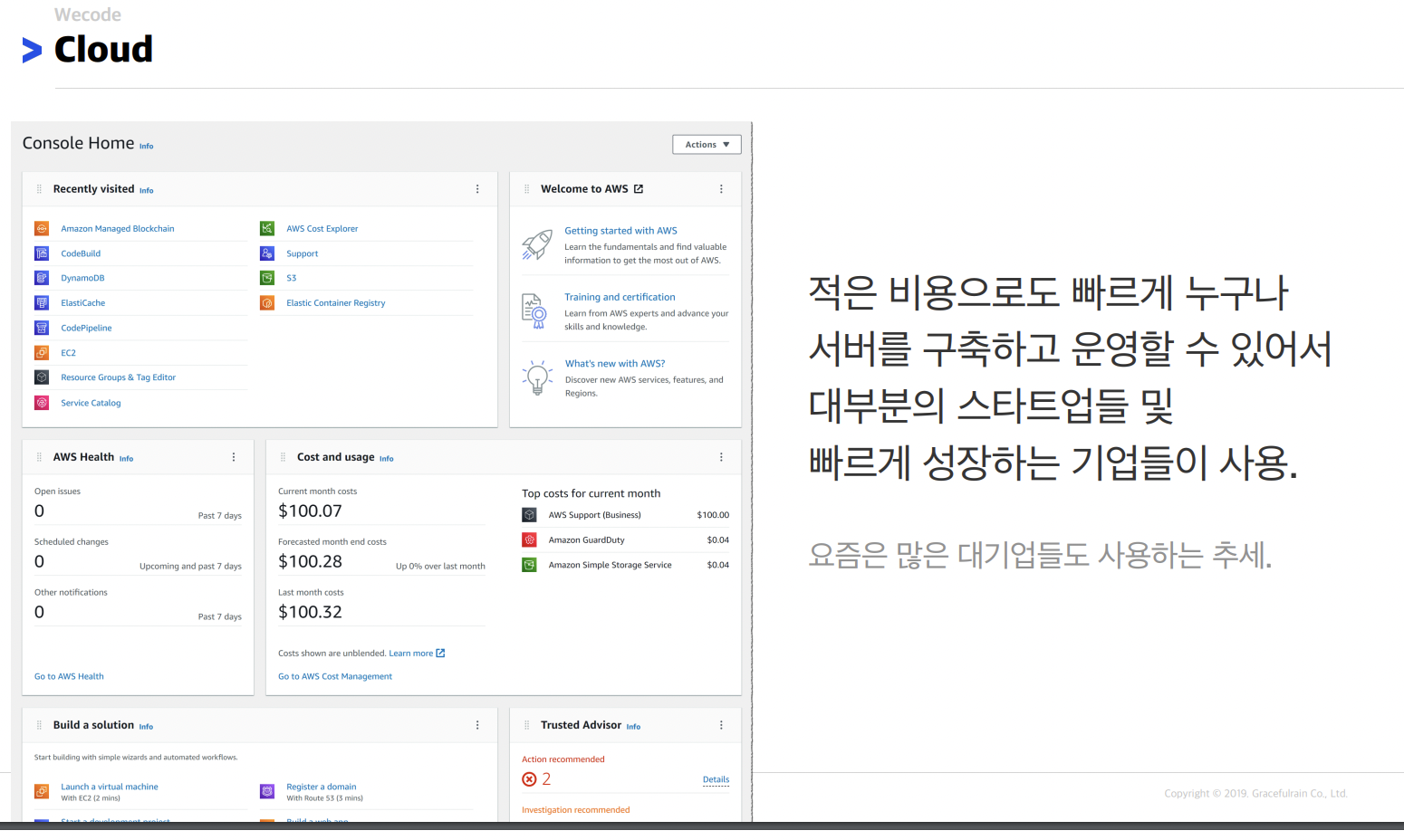 우리 비즈니스가 잘 될지도 안될지도 모르는데, 공간 대여해서, 설치해서 배포 환경 서버 만들 필요가 없다는 것