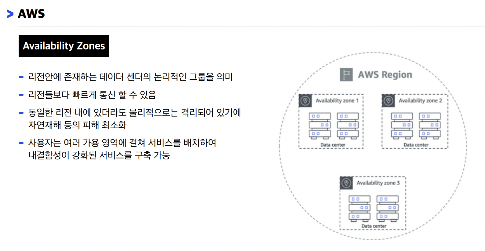 같은 region 내에서도 zone 1,2,3으로 나누어서, 하나가 다운되더라도 영향 없도록