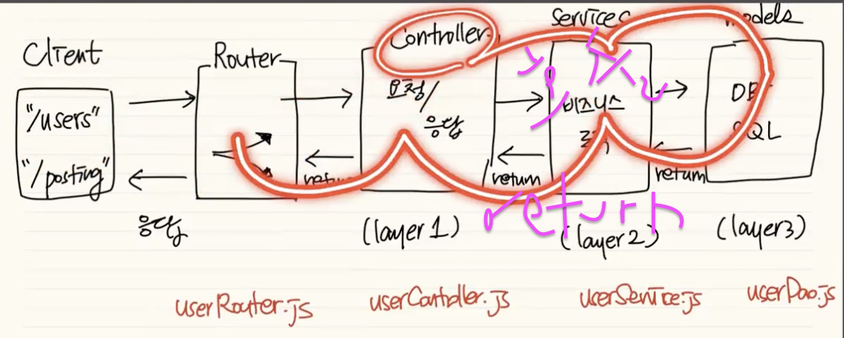 즉, 같은 signup 함수를 3개로 쪼개는 것 (controller, service, model)