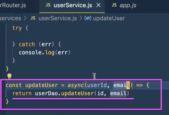 4-3-2. userService.js에서는, userDao로 보내는 코드
