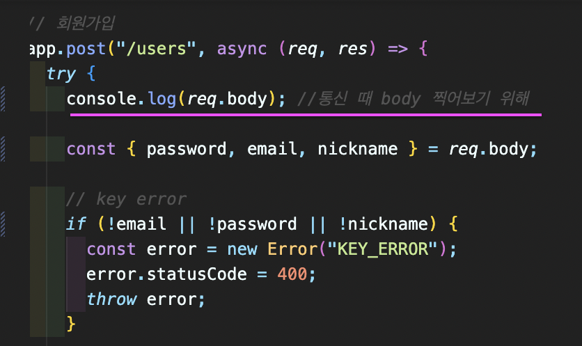 req.body에 비밀번호도 토큰 처리돼서 보인다.