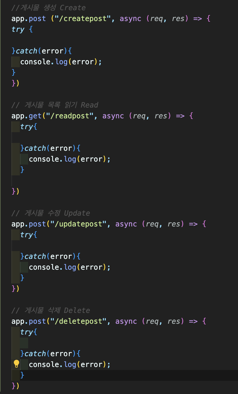 그리고 한번에 게시물 생성/ 삭제 / 목록 하는게 아니라,