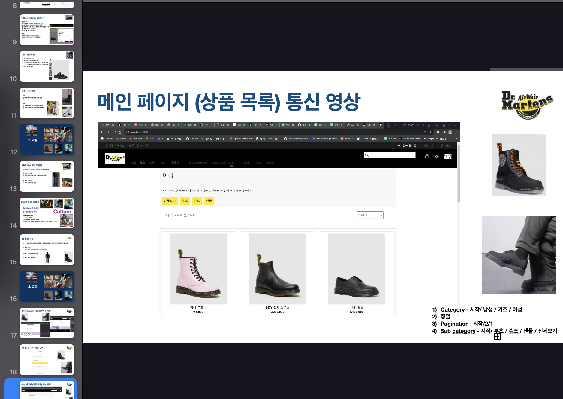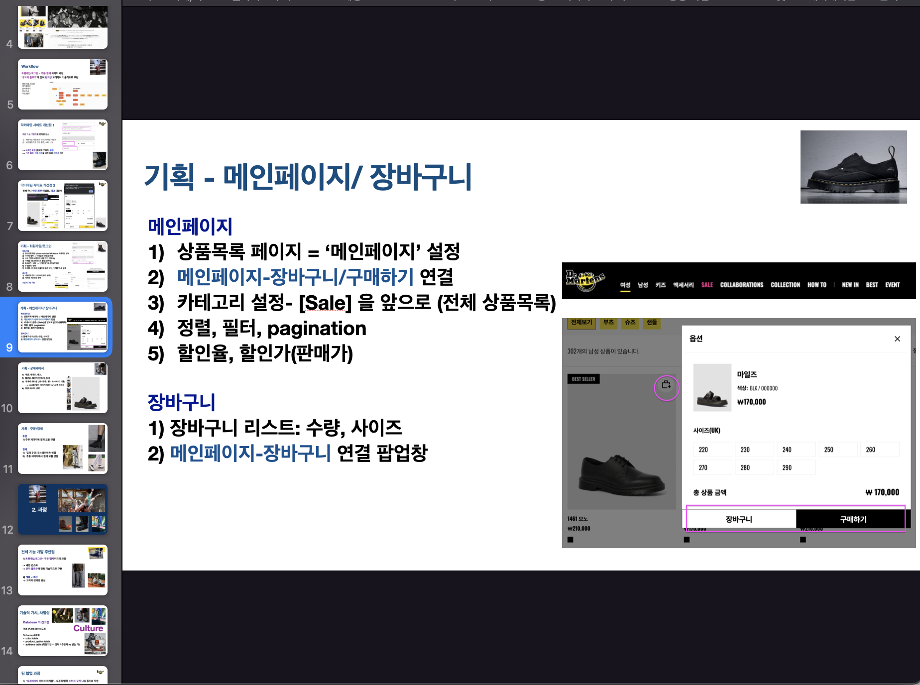 메인페이지에서는 장바구니와 연결되고, 필터링이 있고 등등.