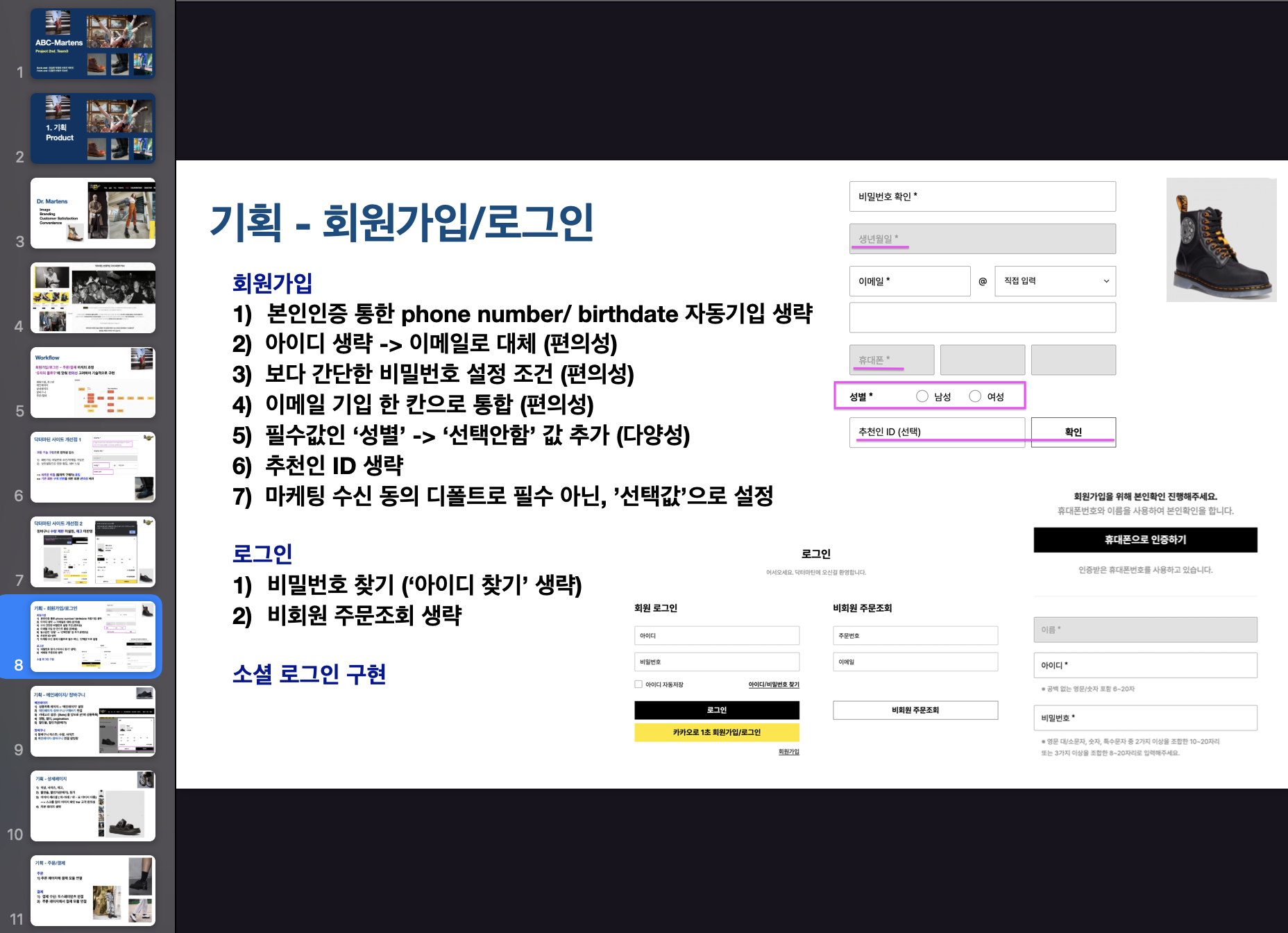 여기에선 편의성을 위해 아이디/ 이메일을 하나로 통합하였고, 상세페이지에서는 이미지가 슬라이드로 이렇게 이동되고