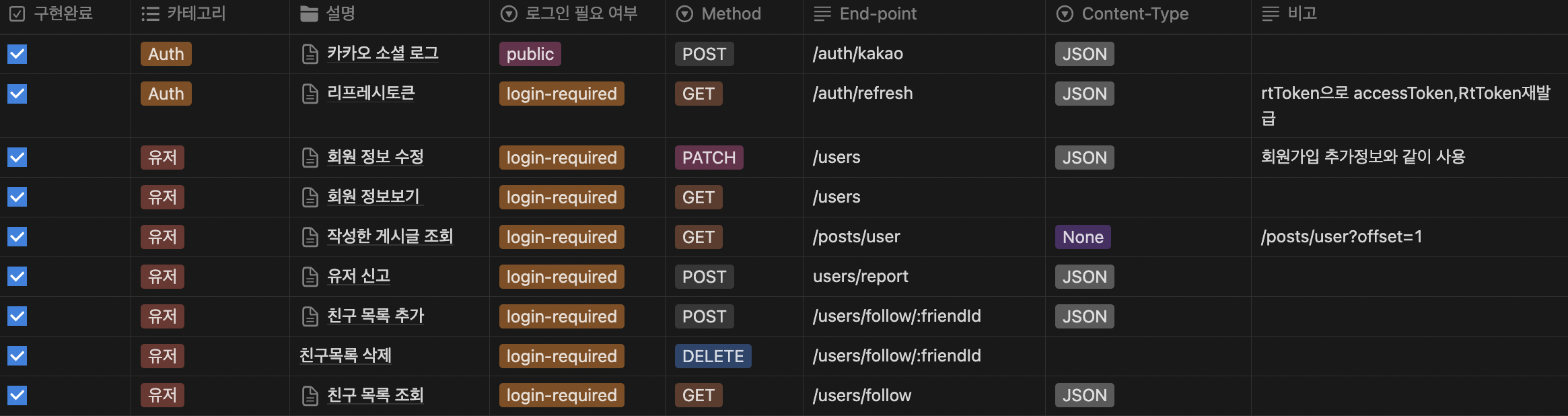 4. API 목록 정리