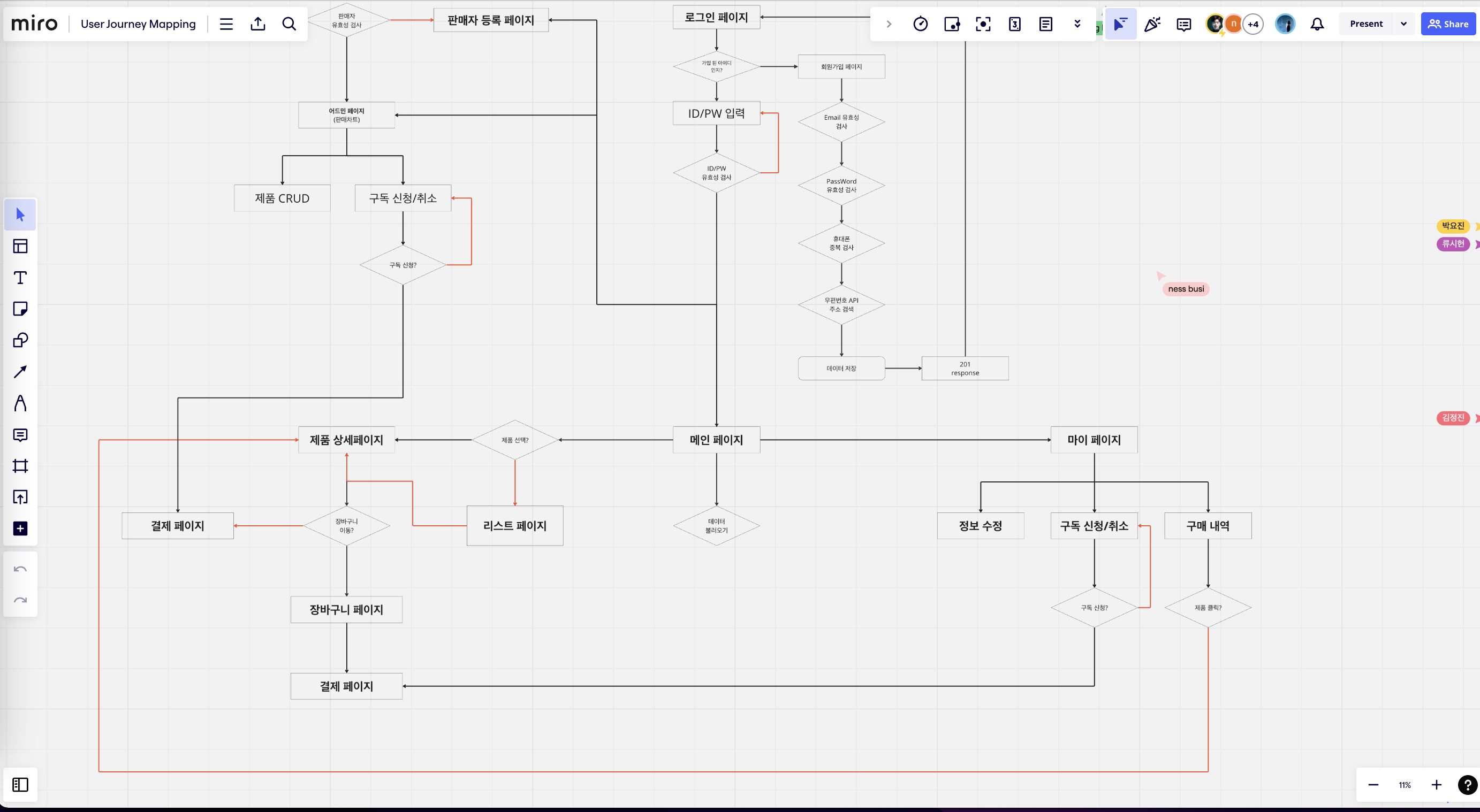 프+ 백 모여서 user flow를 그림
