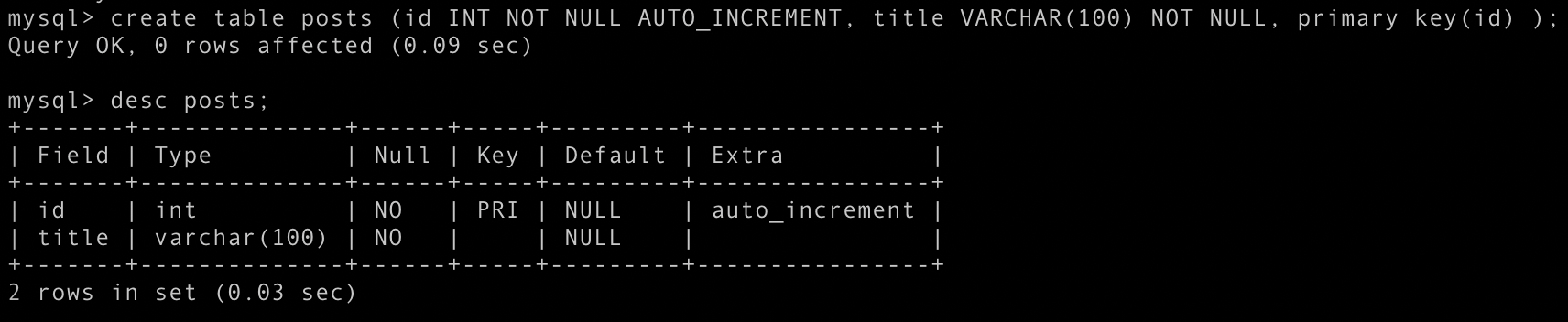 mysql> CREATE TABLE posts