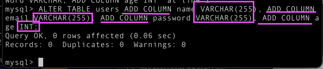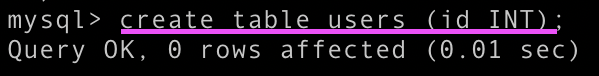 mysql> CREATE TABLE users