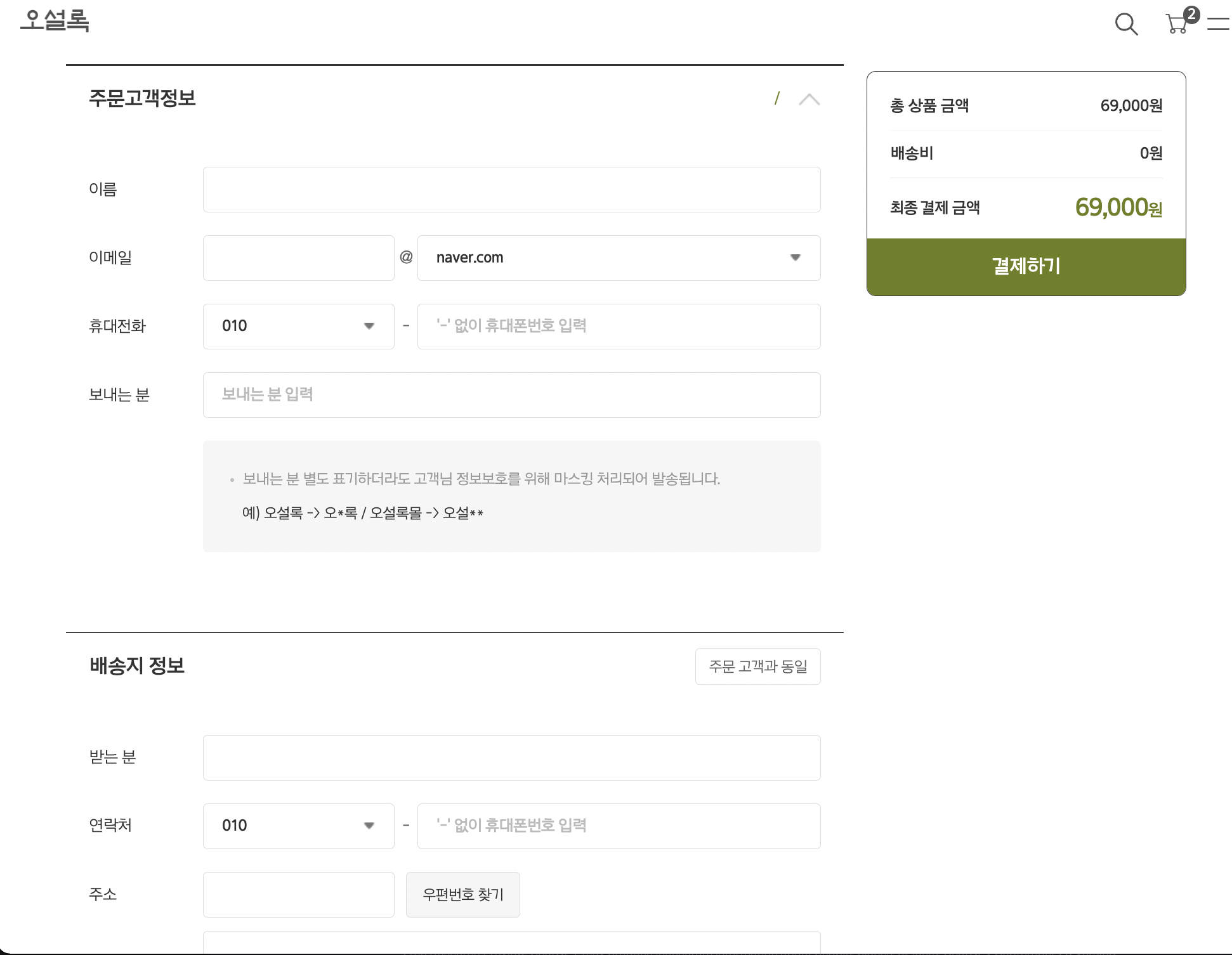 아래의 오설록 주문 페이지와 같이,