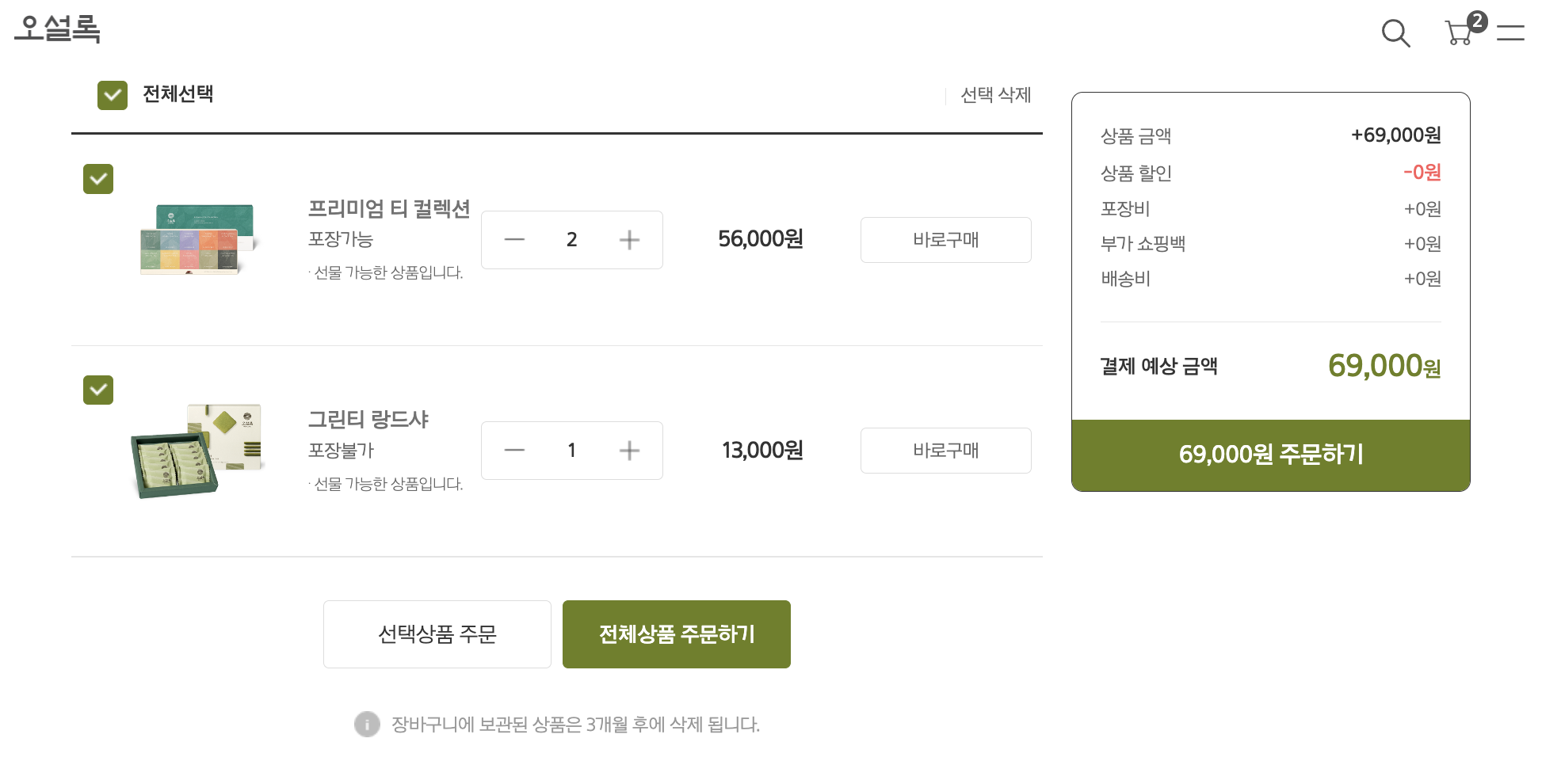 아래의 오설록 주문 페이지와 같이,