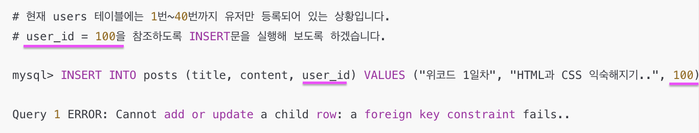 UPDATE posts SET content='위코드 3개월 과정을 시작하며...' WHERE user_id=1 AND id=1;