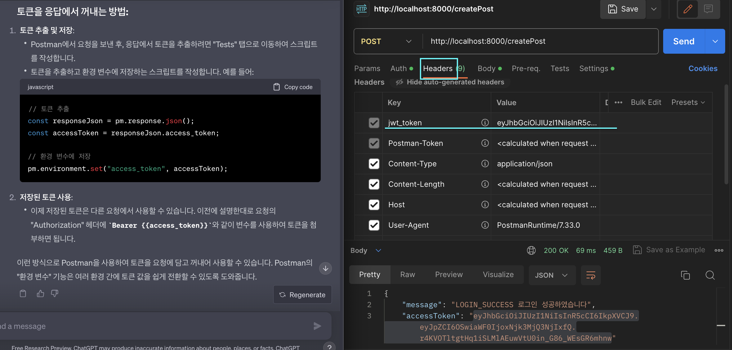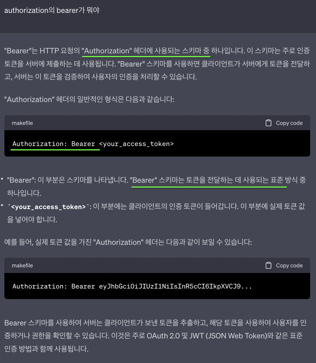 Headers 에 자동 저장 되고, bearer가 앞단에 추가가 된다고 하는데 그런 거 필요 없다