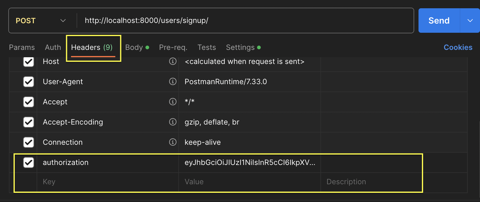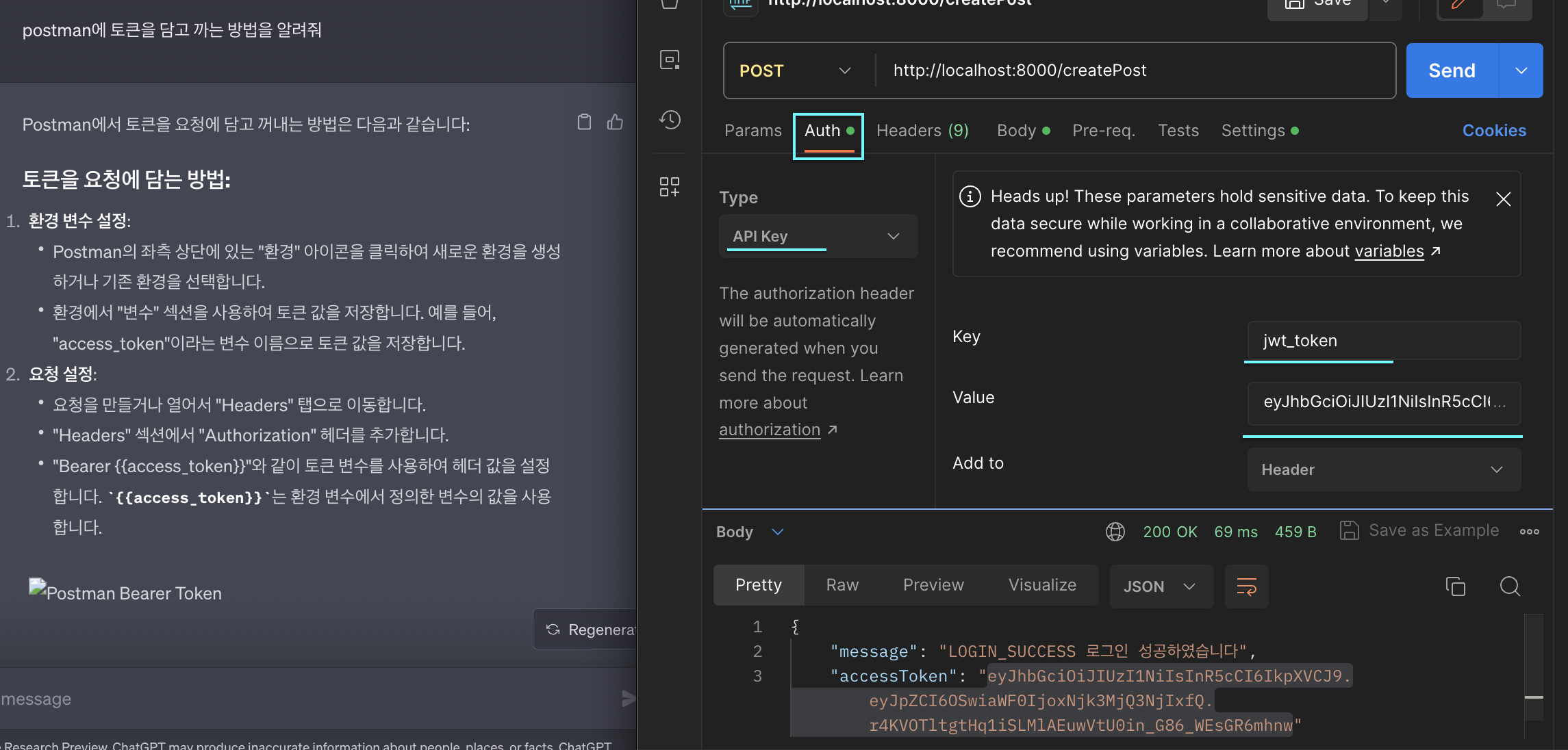 포스트맨에서 토큰을 담은 Key 바꾸기